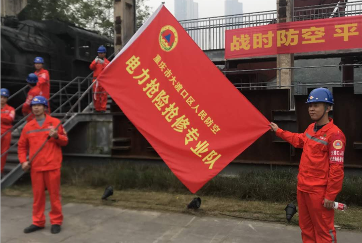 重慶大渡口區(qū)人民防空辦公室組織的大渡口區(qū)2019年人民防空專業(yè)隊伍 防空襲綜合演練:現(xiàn)在進(jìn)入現(xiàn)場的是我區(qū)電力搶險搶修專業(yè)隊,這支專業(yè)隊由重慶寶翼電力設(shè)備維護(hù)有限公司組建。戰(zhàn)時該專業(yè)隊主要負(fù)責(zé)城市電力應(yīng)急供應(yīng)及電力中斷恢復(fù)任務(wù),本次演練主要負(fù)責(zé)電力系統(tǒng)受損時的恢復(fù)工作。